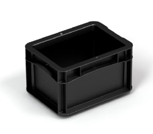 Bewusstes „ökologisches“ Stauen und Ordnen mit der nachhaltigen Euronormbox in schwarz aus Recyclingmaterial.